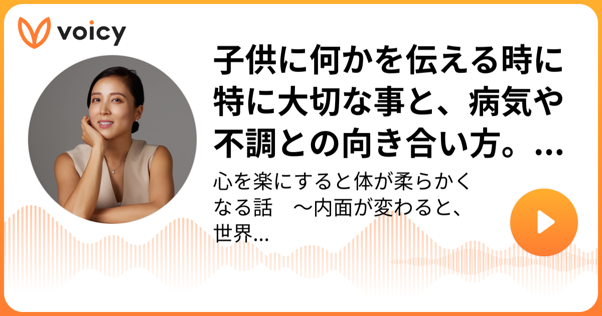 子供に何かを伝える時に特に大切な事と、病気や不調との向き合い方。まだ起きてもいない未来を心配してしまう方への処方箋 | #ジャパニーズヨガなつみ #JapaneseYoga「心を楽にすると体が柔らかくなる話」/ Voicy - 音声プラットフォーム